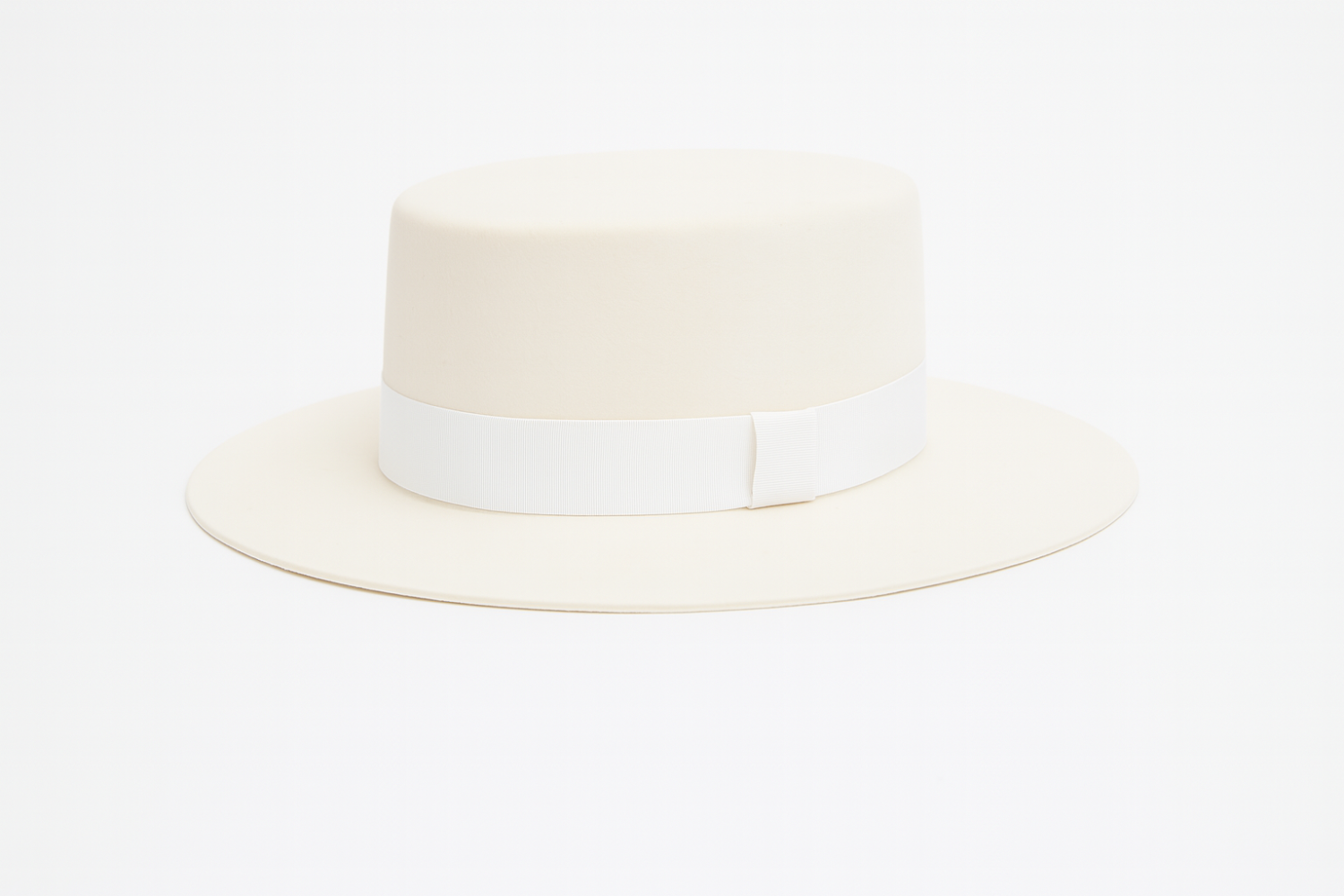 The Halo hat combines timeless elegance with modern design, featuring a pristine white color and a short brim that offers a refined silhouette. Crafted to enhance any outfit with its clean lines and understated charm, making it an essential accessory for formal occasions or stylish everyday wear.