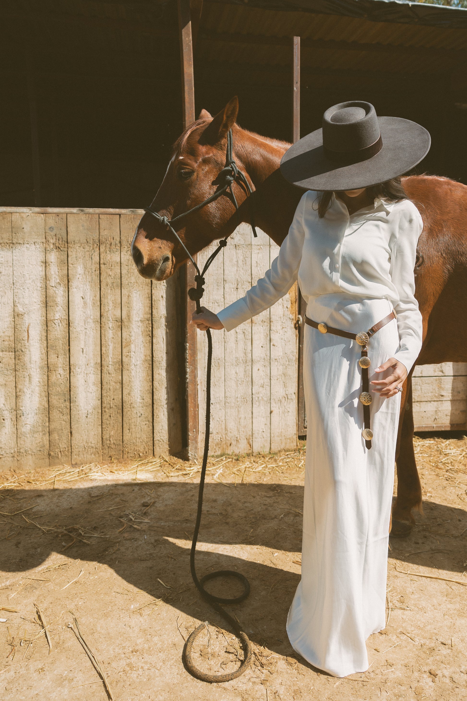 Discover the perfect accessory to elevate your outfit with the Nomade Hat. This elegant brown hat features a wide brim and luxurious velvet detailing, providing the most feminine style. A must-have for any fashion-forward individual.