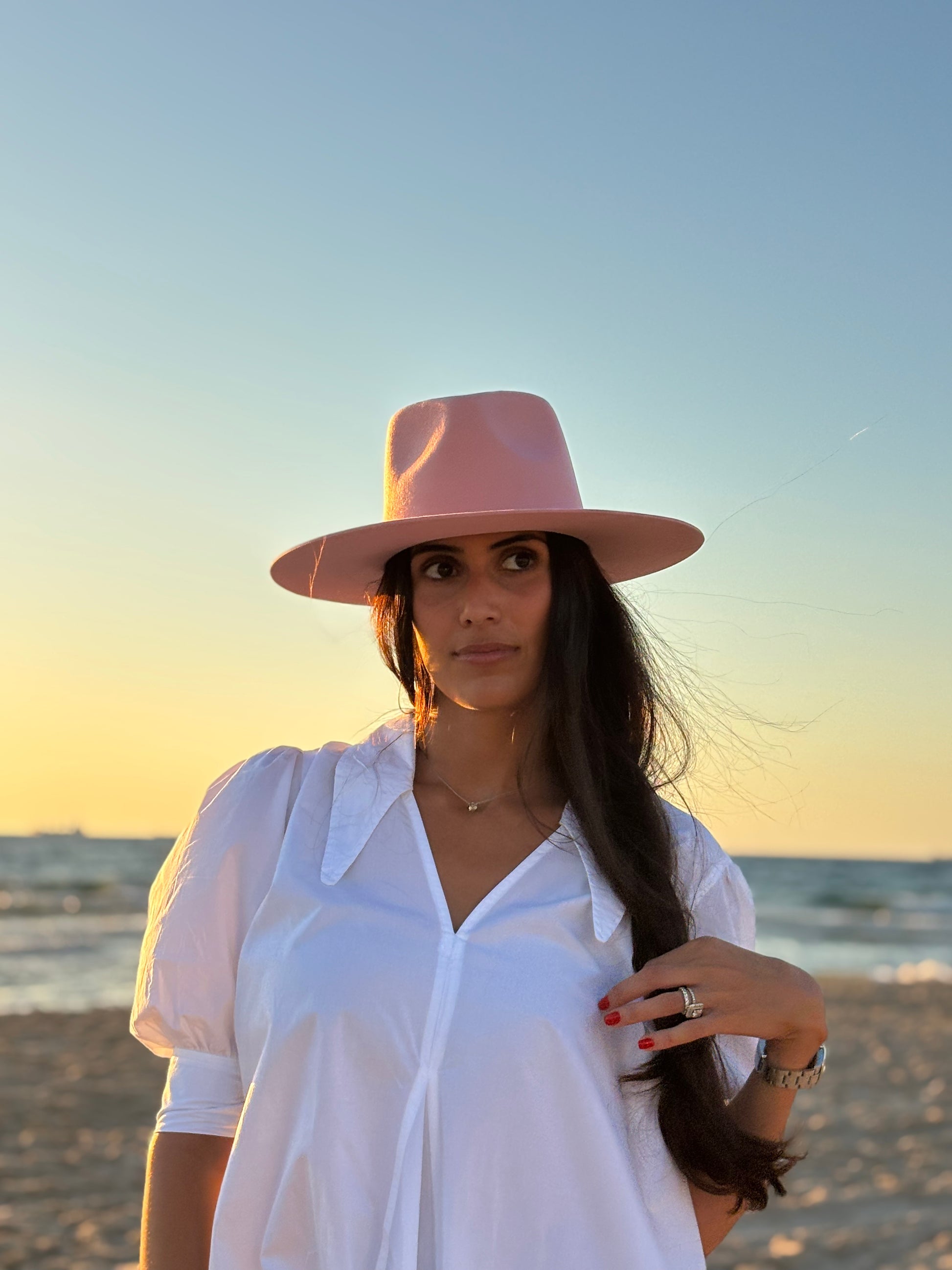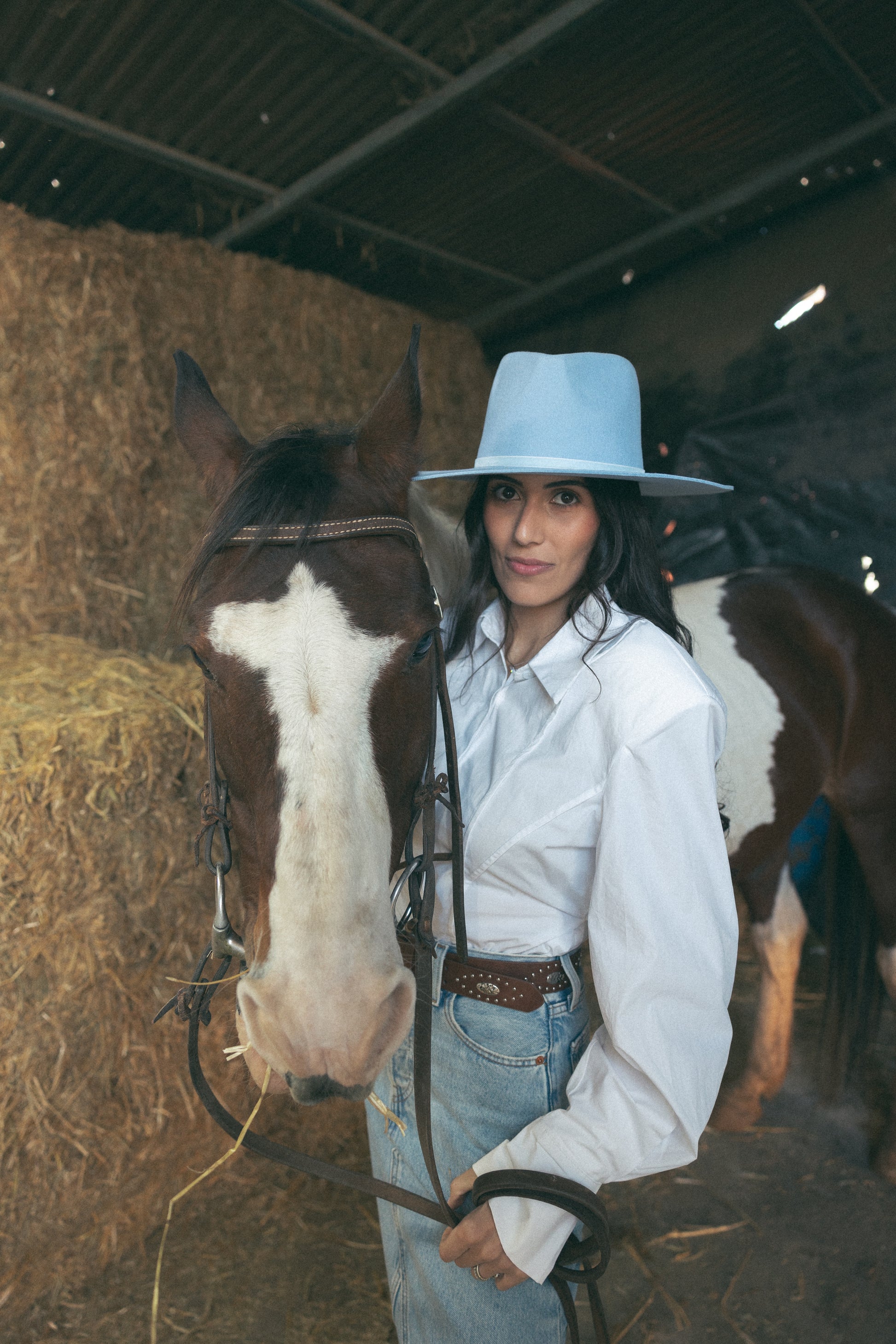 Crafted from high-quality wool, this Petal Hat exudes elegance and style. The soft pastel blue color, paired with the luxurious velvet detailing, makes it a perfect accessory for any outfit. Also available in a delicate pink hue. Elevate your look with this chic Petal Hat.
